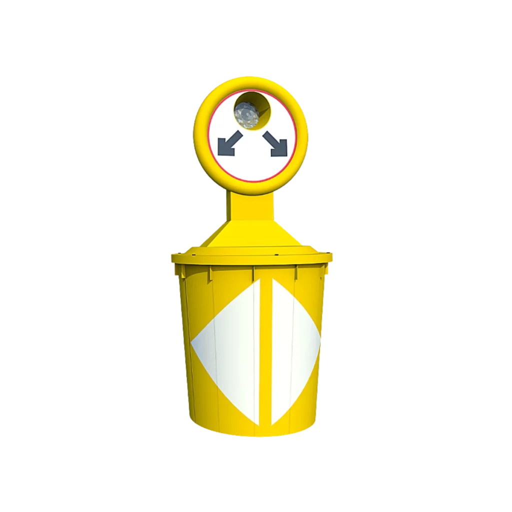 - Como elemento complementario se recomienda integrar un grupo de hitos flexibles, que al ser atropellados, no dañan a los vehículos pero generan una fuerte señal audible de advertencia.