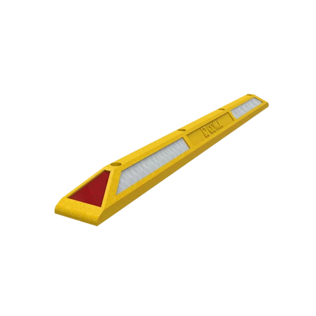 - Con el ancho ideal para colocarlo entre los carriles de circulación y altura que delimita el paso.