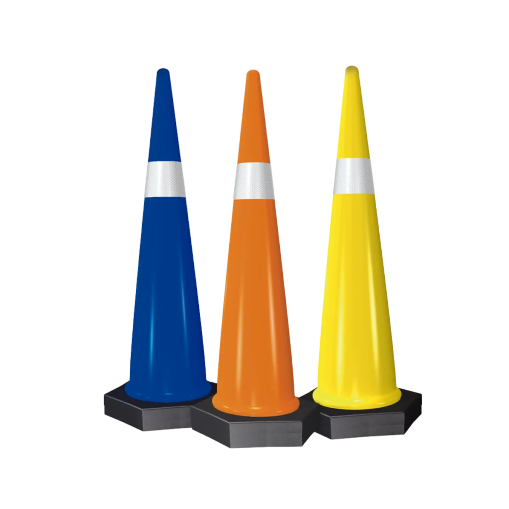 Cono de gran altura, totalmente visible, adecuado para señalizar y confinar en desviaciones, obras viales o accidentes. Base rellenable con arena cuya finalidad es incrementar el peso y proporcionarle estabilidad contra impactos y viento. Para aumentar la visibilidad nocturna se le pueden colocar una o varias bandas de reflejante. El de mayor peso y más económico del mercado.