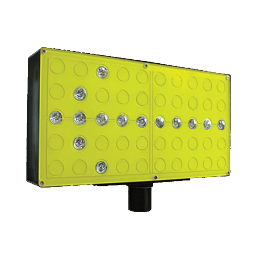 Señal tipo mini flechero, tiene interruptor de encendido y apagado, leds rojos de alta intensidad destellantes, base cilíndrica para poner sobre un cono, barricada o paleta. De gran utilidad en obras viales, zonas de reparación, desviaciones y deslaves de carreteras. Resistente al medio ambiente. Su visibilidad es tan eficaz que se puede ver a más de 200 mts. de distancia durante la noche y en condiciones climáticas extremas. Utiliza 2 baterías tipo D.