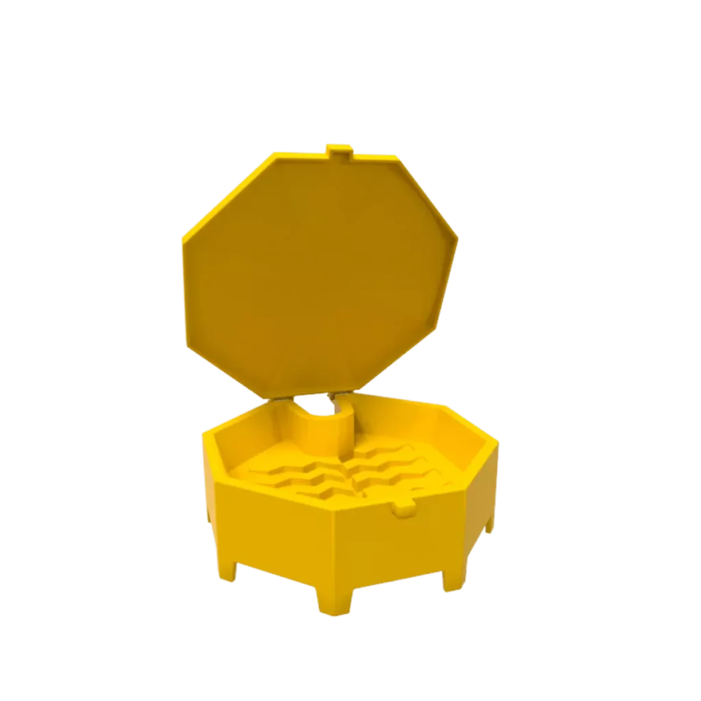 Embudo para tambos fabricado en polietileno de media densidad. Con tapa abatible. Adaptable a tambo de 200 lts. Difusor de salpicaduras. Mantiene botellas rectas en vaciado.