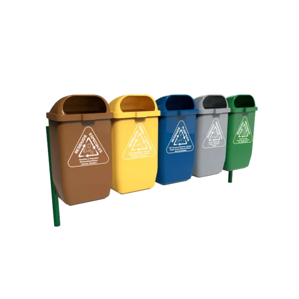 La ESTACIÓN DE RECICLAJE cuenta con una combinación de contenedores EUROPA 50, fabricados con polietileno de alta densidad, reuniendo las más altas condiciones de fluidez, gran resistencia a golpes o roturas.