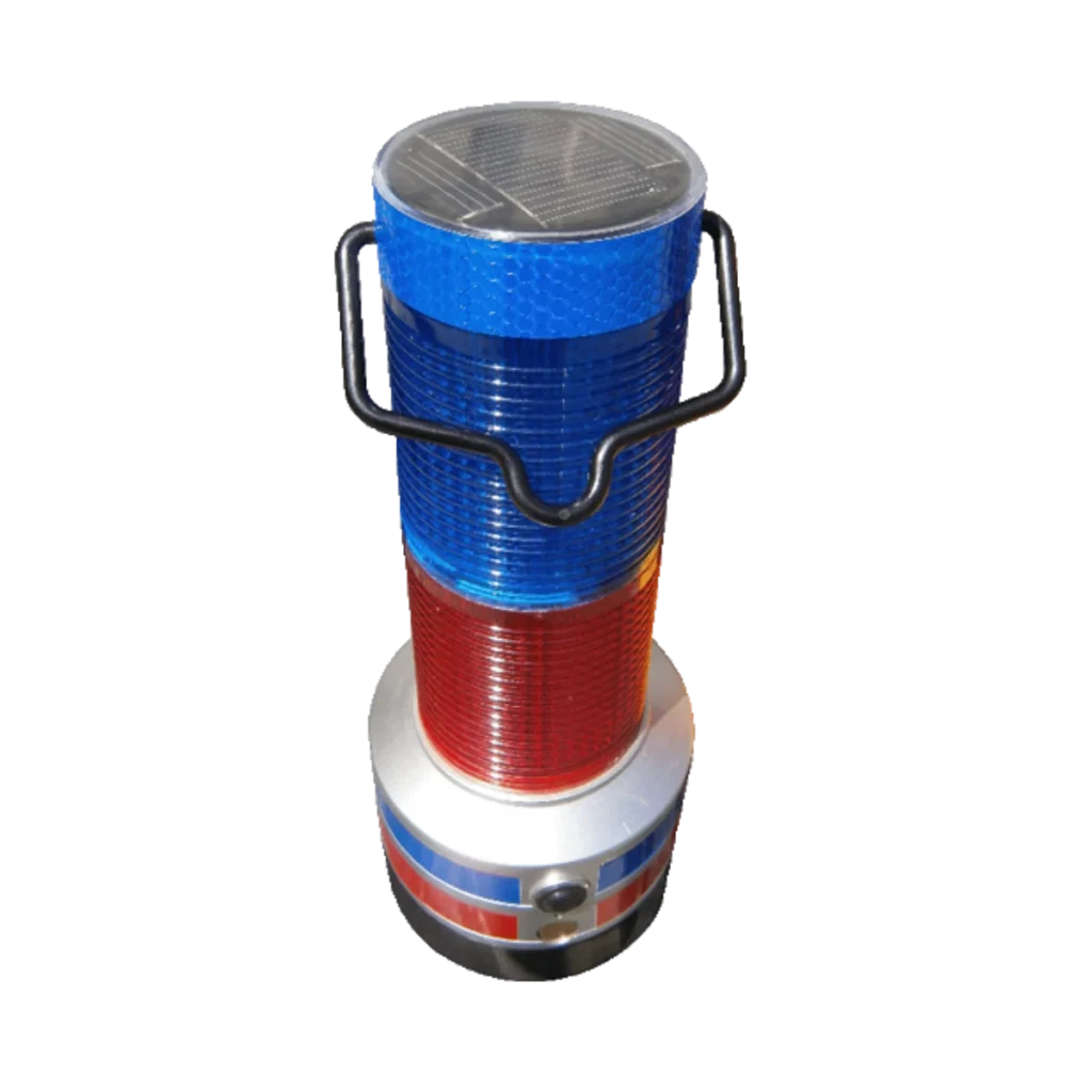 Luz de destellos alternados, visible a gran distancia, base plana y gancho para colgarse, interruptor de encendido y apagado, sensor de encendido automático, utiliza celdas solares para recargarse.