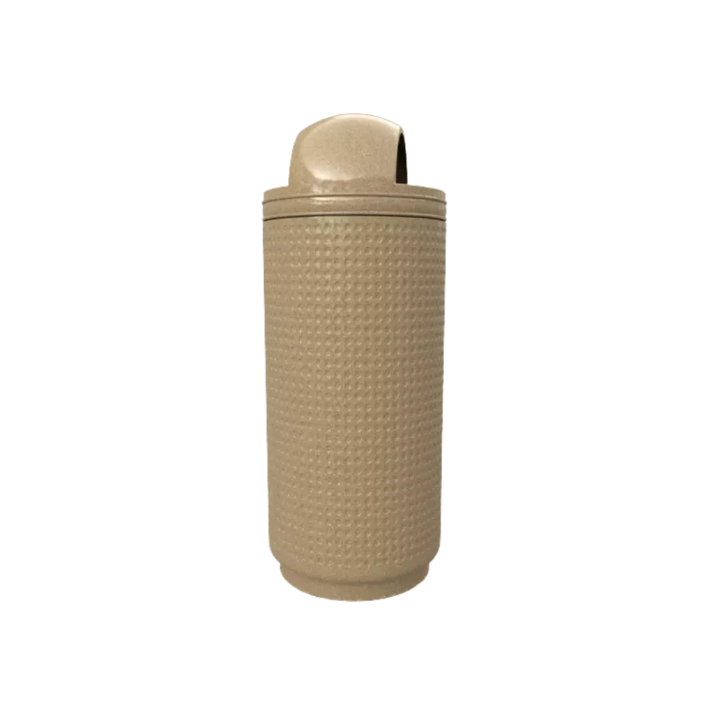 • Papelera DOMO 3 compuesta de 2 piezas, tapa y bote, fabricada en polietileno de media densidad, pared de 4 mm, mediante el proceso de rotomoldeo, para darle mayor resistencia a impactos y evitar deformaciones.