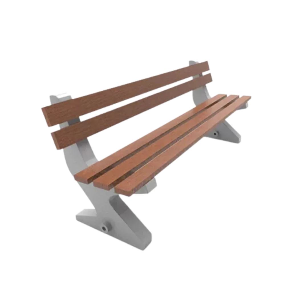 Fabricada en polietileno de media densidad, para anclaje al piso. Cuenta con listones de madera plástica.