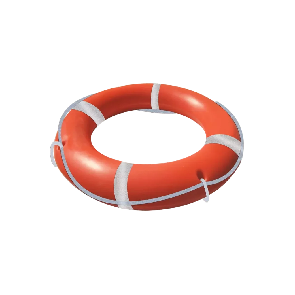 Salvavidas fabricado en polietileno de media densidad relleno de poliuretano espumado, con reflejante resistente al agua salada.