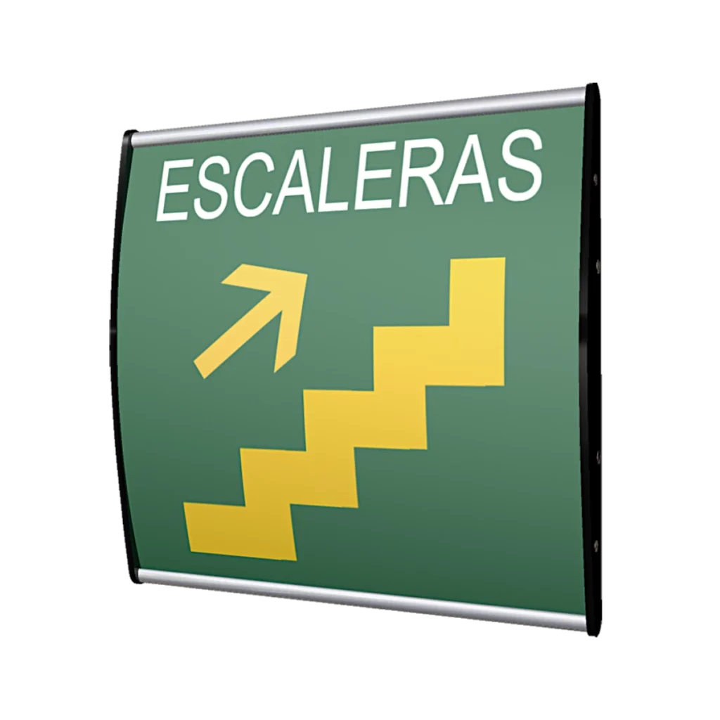 Señal premium con avisos gráficos especiales para fijarse en muros o superficies planas en gran variedad de tamaños para múltiples mensajes. Con dos orificios avellanados para tornillo de fijación. Película anti reflejante. Fabricado en perfil de aluminio natural, anodizado, satinado, curvo extruído.